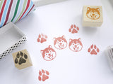 Smiley shiba inu stamp, dog paw rubber stamp and one brown ink pad *I send you these set putting in a handmade little box.